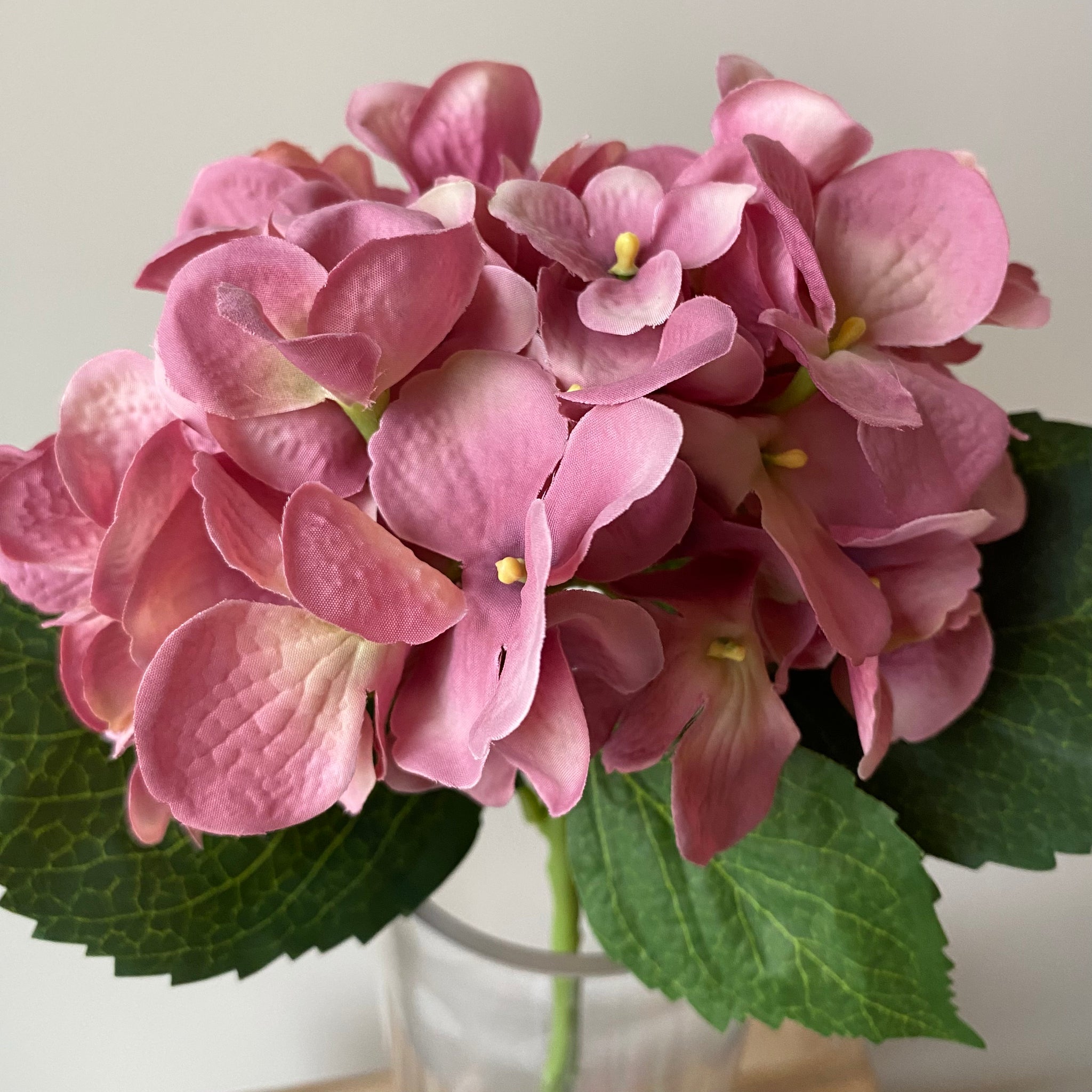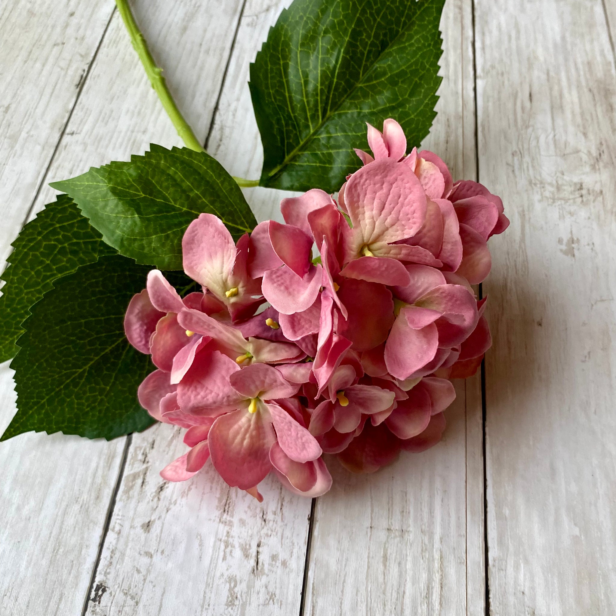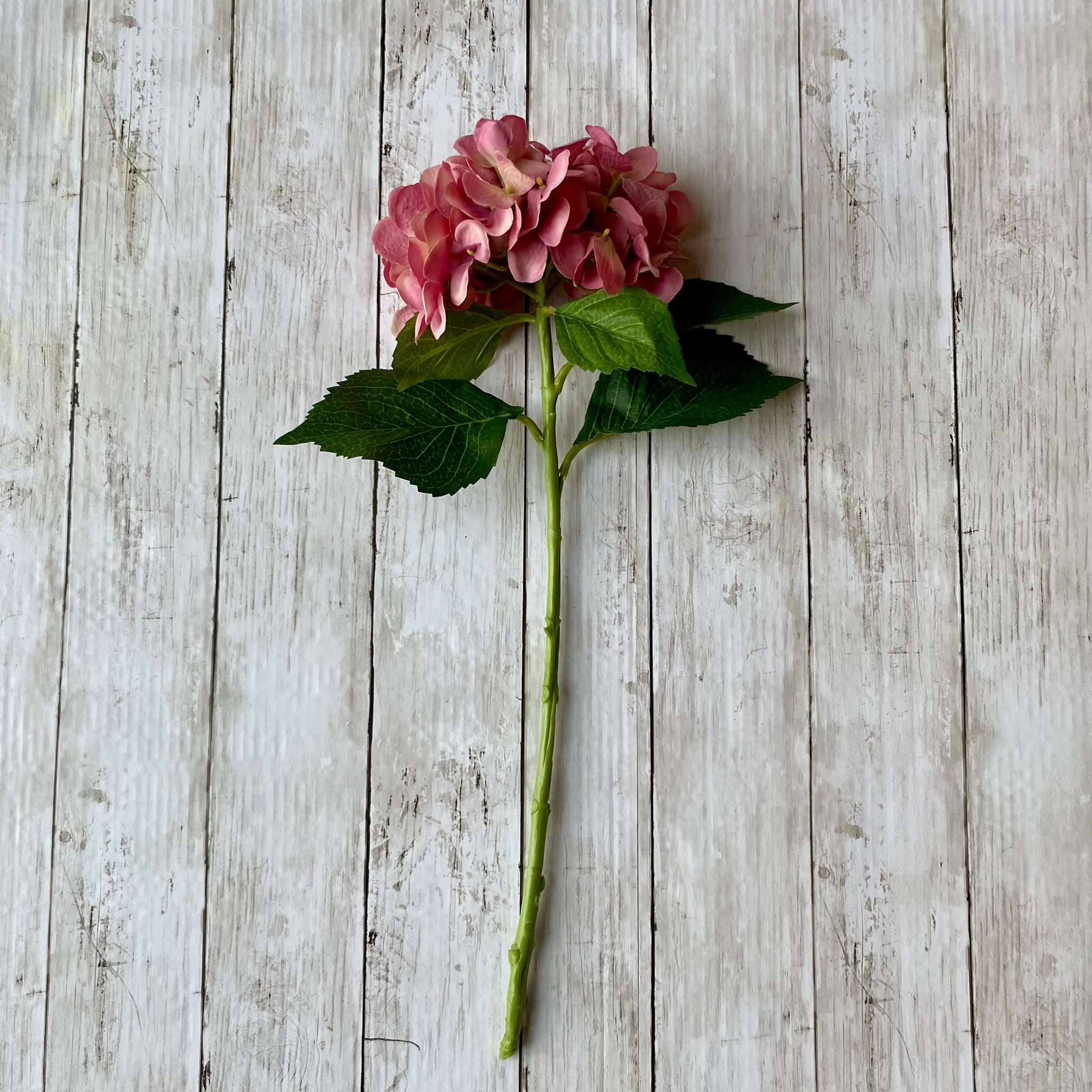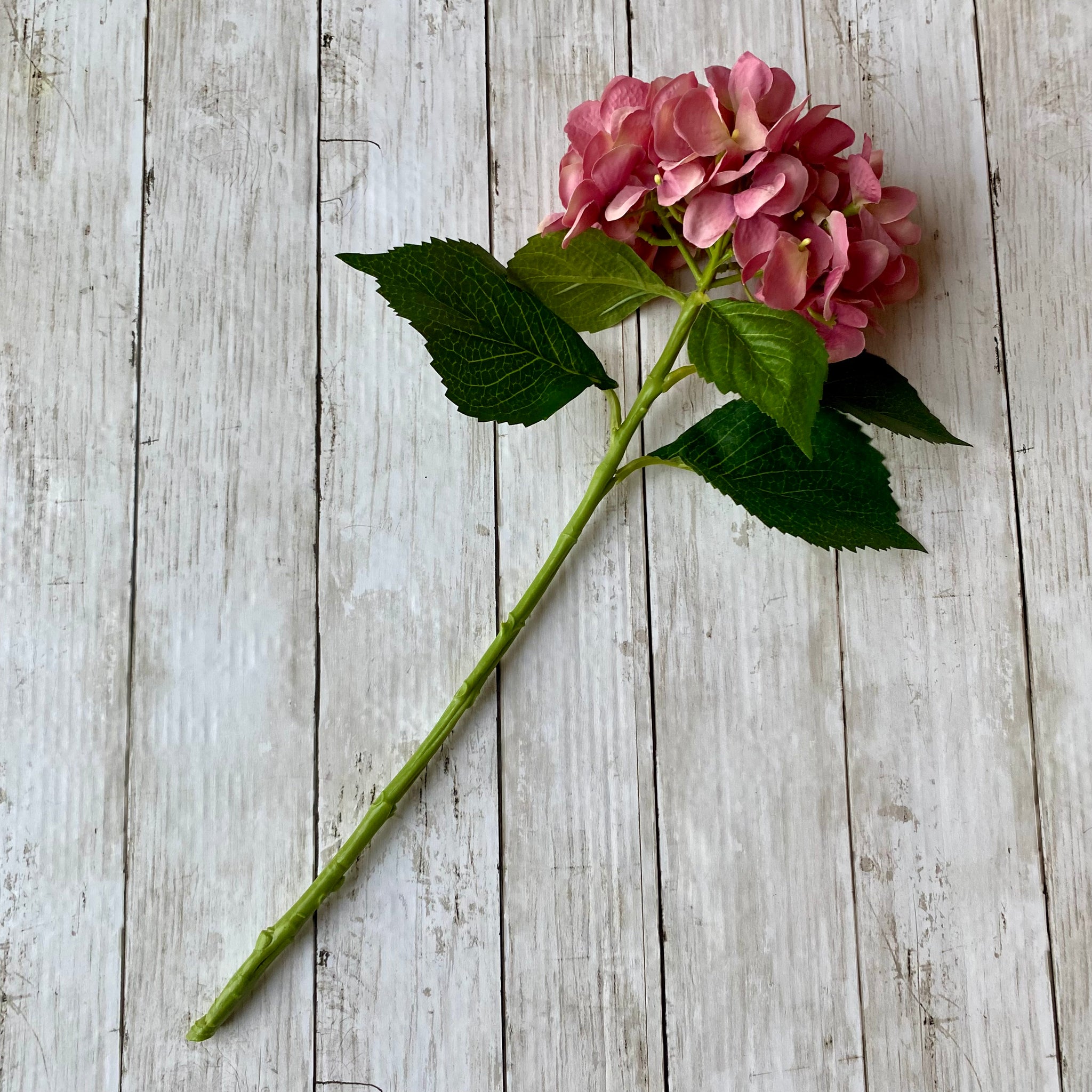 Bright, beautiful pink Hydrangea stem will bring a burst of colour to your home. This high quality faux hydrangea stem looks fabulous styled as a bunch or mix with other flowers to create a stunning display.