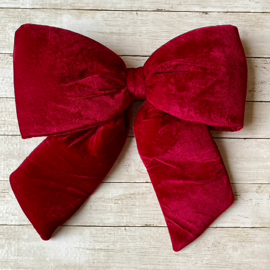 Sumptuous plush padded velvet bow to hang on your front door, decorate your tree, or add to your home for festive warmth.