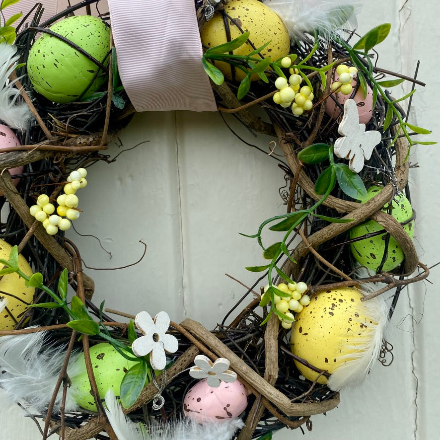 This wreath is not suitable to be left outside during heavy falls of rain or extended exposure to sunshine or wind. The colour of the eggs may fade over time.